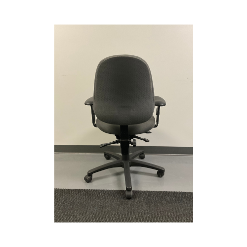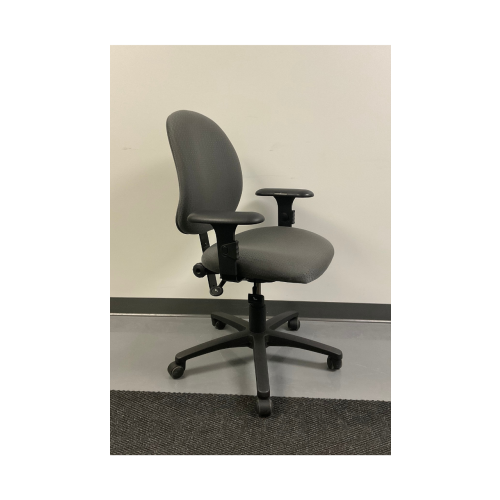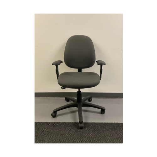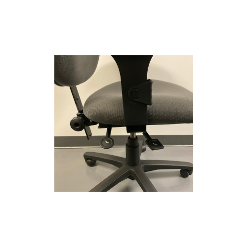 Chaise de travail ergonomique avec dossier et siège de hauteur moyenne, dotée d’un réglage de la hauteur du siège et du dossier, d’accoudoirs ajustables, ainsi que d’un angle de siège et de dossier personnalisable pour un confort optimal.