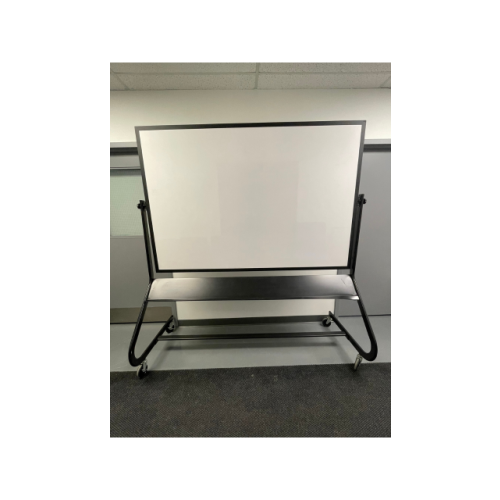 Tableau blanc mobile autoportant avec une tablette inclinée et une surface pivotante permettant de passer facilement d’un côté à l’autre. Facile à déplacer et idéal pour les espaces de travail flexibles.